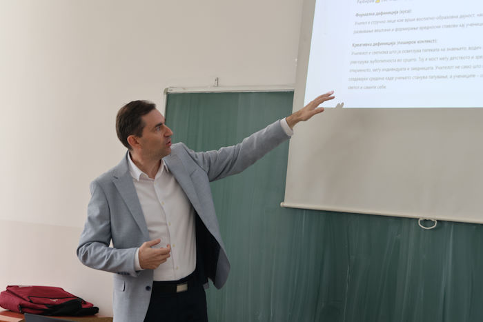 Денот на учителот, 5 октомври, Факултетот за образовни науки го одбележа со работилница на една од моментално најактуелните теми – Вештачката интелигенција во образованието. Предавач на темата „Учителот во ера на вештачка интелигенција“ беше проф. д-р Сашо Коцевски, професор од научната област вештачка интелигенција и системи од Факултетот за информатика при Универзитетот „Гоце Делчев“ – Штип. Професорот Коцевски истовремено е и автор на „Водич за вештачка интелигенција наменет за наставници, стручни соработници и ученици“, кој беше подготвен од Факултетот за информатика при УГД – Штип, заедно со Министерството за образование и наука.