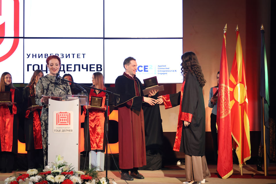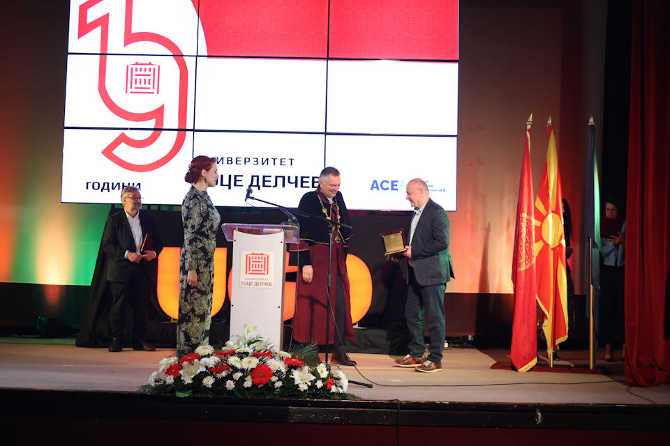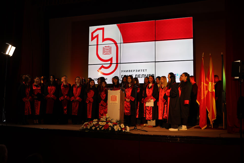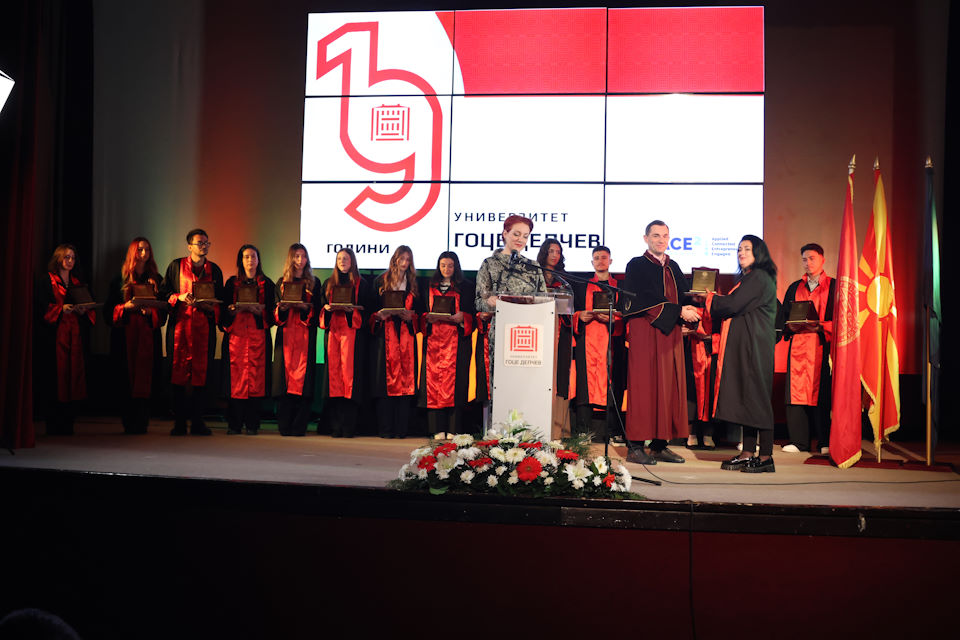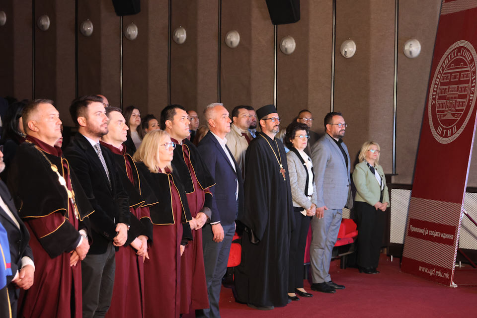 „Денес го славиме датумот на кој од една идеја имаме со јасна визија нова институција која навистина претставува европски универзитет. Место каде што не само нашите студенти добиваат знаења, туку и простор каде што можат да ги развиваат и реализираат своите идеи, место каде што можат да станат навистина успешни млади луѓе и да бидат гордост за целата нација. Ми претставува задоволство што имаме успешно заокружување на оваа деветнаесетта година од основањето, имавме навистина плодотворна недела во која имавме гости од сите осум европски универзитети од Европската алијанса Ace2EU. Гости беа ректорите од сите институции, а беа потпишани и договорите за размена на податоци, што претставува основа за формирање на идно правно лице. Дополнително се одржаа состаноци на институционалните раководители на овој проект од сите девет универзитети. Вкупно имаше над 90 гости од цела Европа – речиси од сите нации – студенти и професори кои напорно работат оваа Универзитетска алијанса да стане вистински простор каде што нашите студенти и наставници ќе можат да работат рамо до рамо со колегите од европските универзитети и да бидат дел од европскиот универзитетски простор“, изјави за медиумите ректорот на УГД, проф. д-р Дејан Мираковски.
