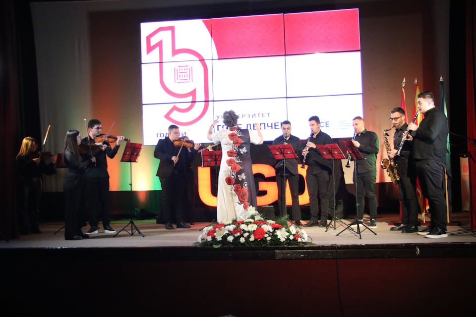„19 години постоење на УГД не претставува само симболична бројка, туку ја покажува симбиозата помеѓу тоа како професорите работат и како студентите живеат на овој Универзитет“, рече Михајло Мирасчиев, студент и претседател на студентската организација СОМА.